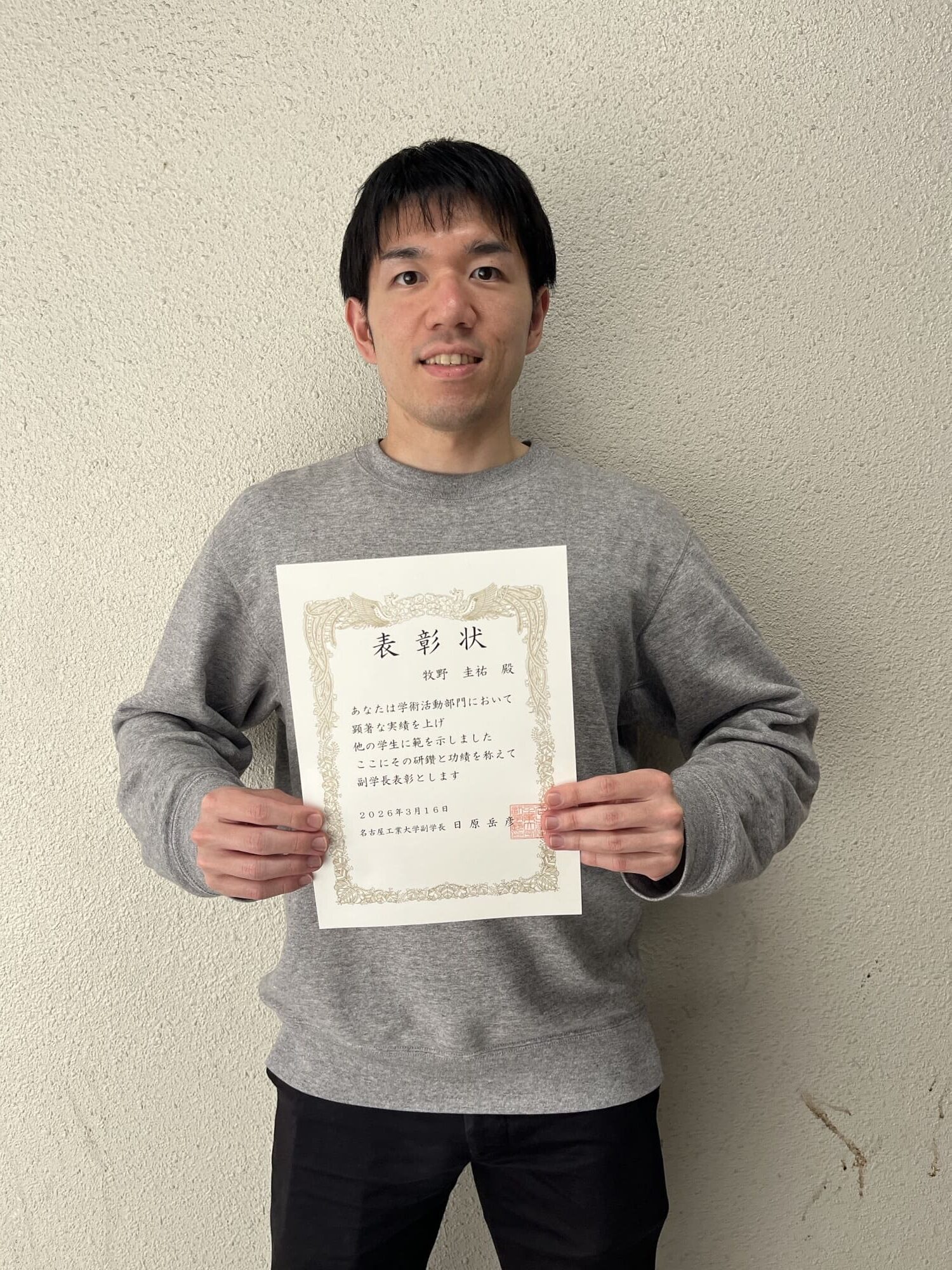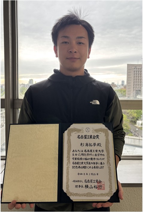 B4の杉浦拓夢さんが名古屋工業会賞を受賞しました。