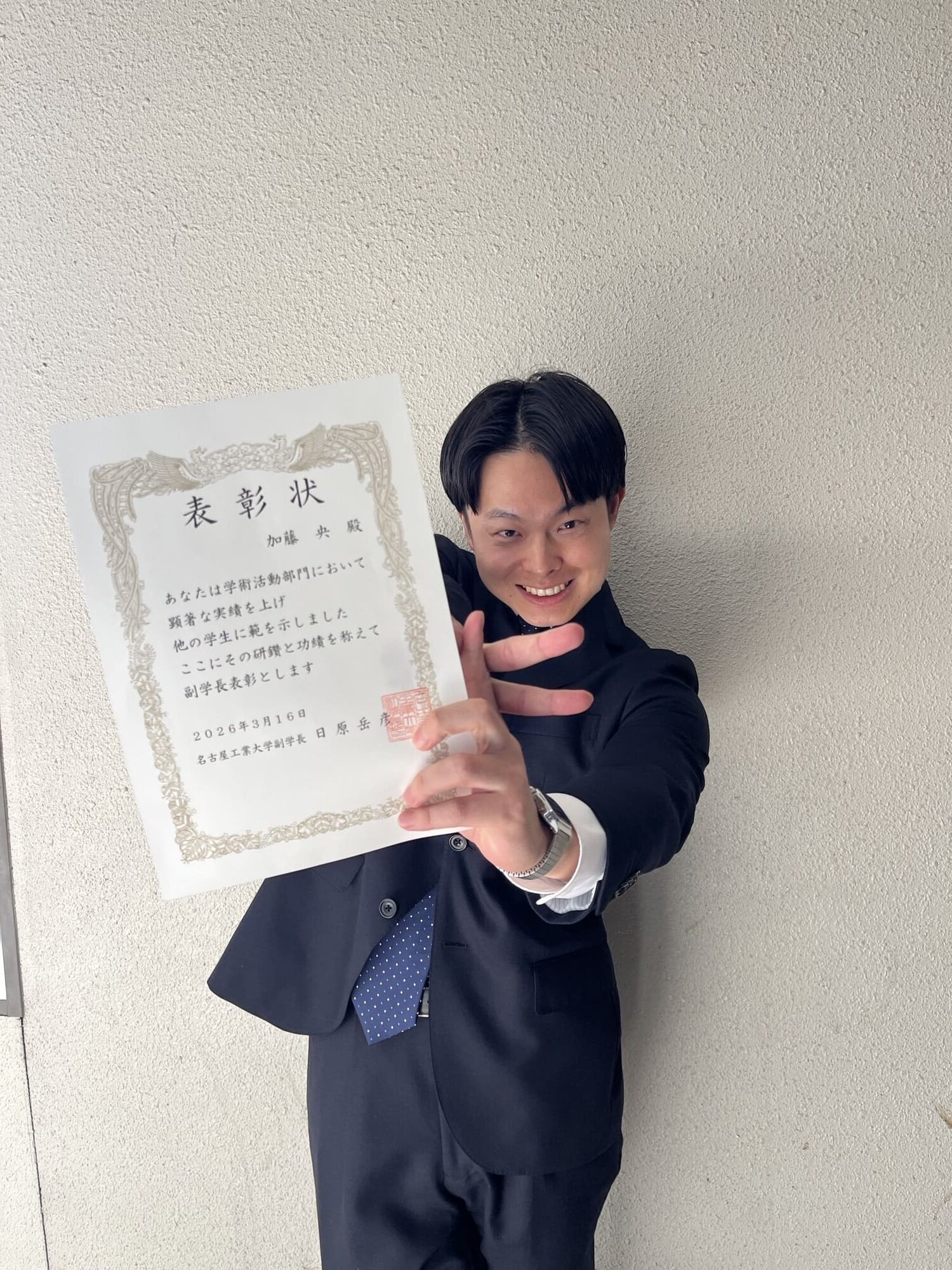 M2の加藤央さんが副学長賞を受賞しました。