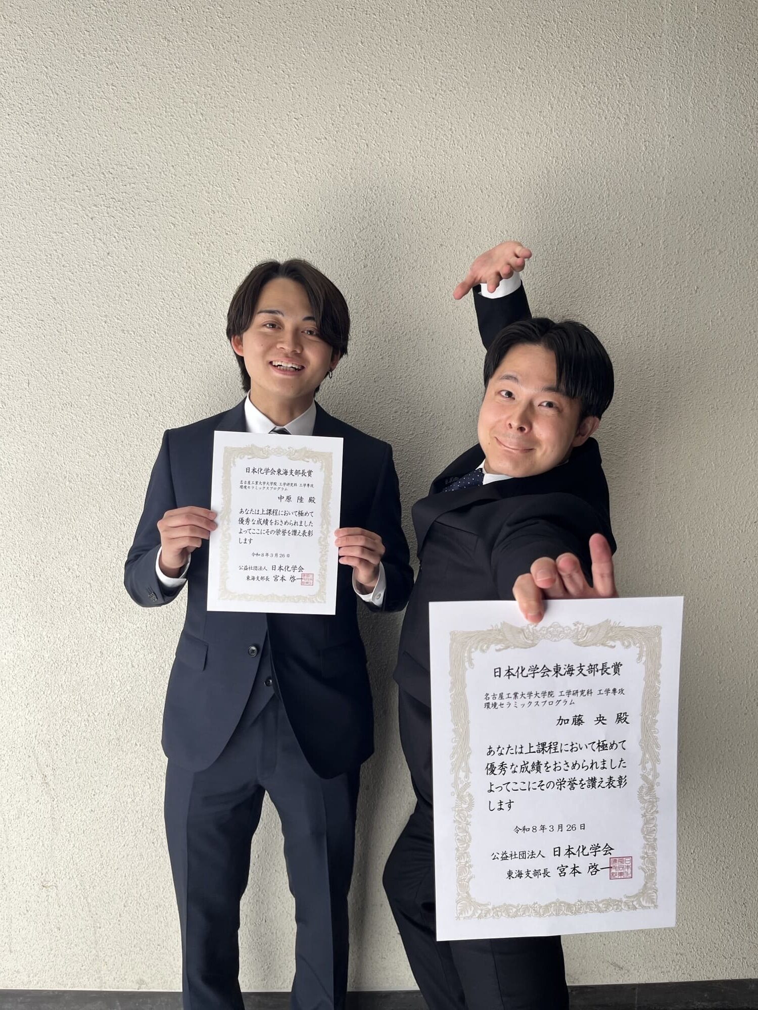 M2の加藤央さん・中原陸さんが日本化学会東海支部長賞を受賞しました。