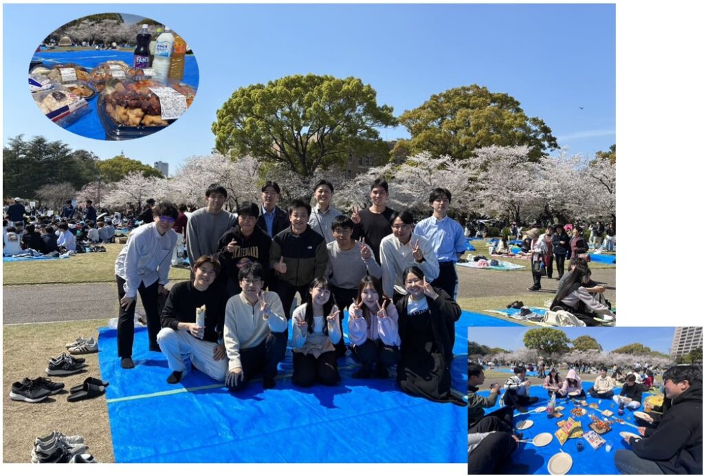 本日4月3日はみんなでお花見をしました。新B4の新貝幸己さん・中島玲さん・中山心さん・野本意織さんを歓迎しました。これからよろしくお願いします。